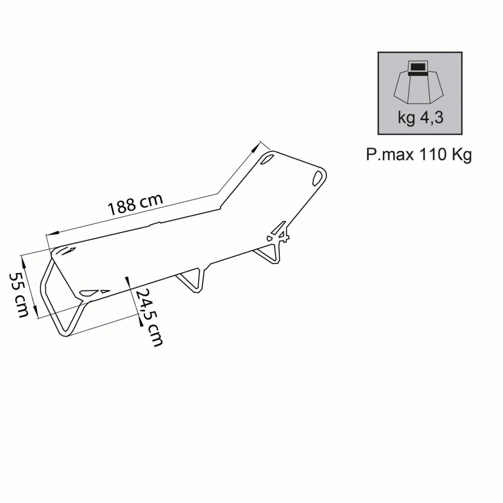 Disponibile BLU, AZZURRO o VERDE LIME struttura in metallo verniciato Ø 18 x 1 mm, portata max 110 kg, tessuto in oxford 600D Dimensioni: cm 188 x 55 x 24,5 h