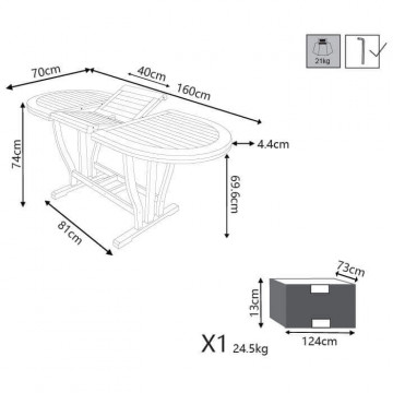 Legno di Acacia massiccio spessore 44 mm doppio bordo Dimensioni: cm 120/160 x 70 x 74 h