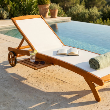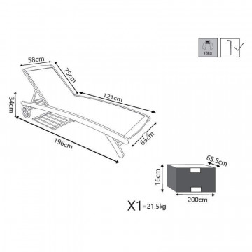 - Dati Tecnici Legno di Acacia massiccio regolabile in 8 posizioni tessuto in textilene colore ecru Dimensioni: cm 196 x 63 x 38/100 h