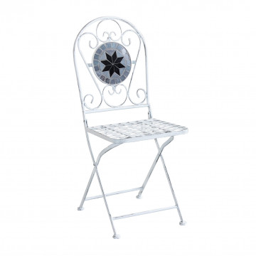 Struttura in metallo verniciato a polvere e marmo set composto da 1 tavolo e 2 sedie color bianco, trattamento elettroforesi Dimensioni: T. cm 60 x 72 h S. cm 36 x 35 x 91 h