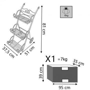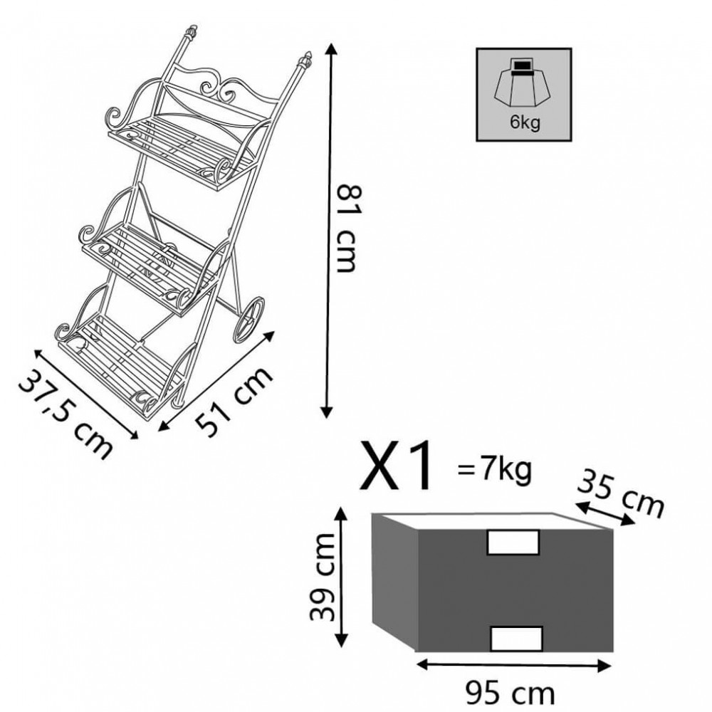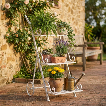 Étagère in metallo per fiori verniciato a polvere color BIANCO trattamento elettroforesi Dimensioni: cm 37,5 x 51 x 81 h