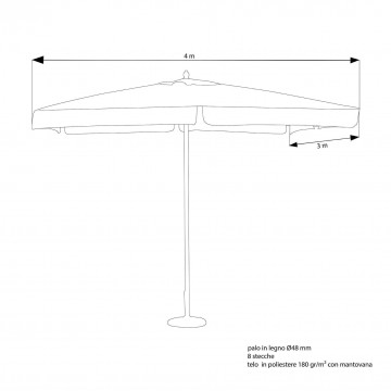 Telo AVORIO, VERDE SCURO, Bordeaux palo in legno Ø48 mm telo poliestere 180 gr 8 stecche, antivento e mantovana Dimensioni: m 3 x 4