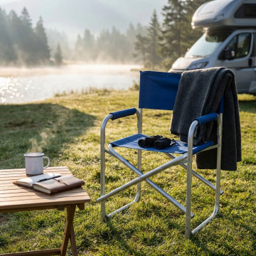 Disponibile BLU o GRIGIO struttura in alluminio Ø 25 mm, portata max 100 kg, tessuto in oxford 600D Dimensioni: cm 55 x 47 x 47,5/78 h