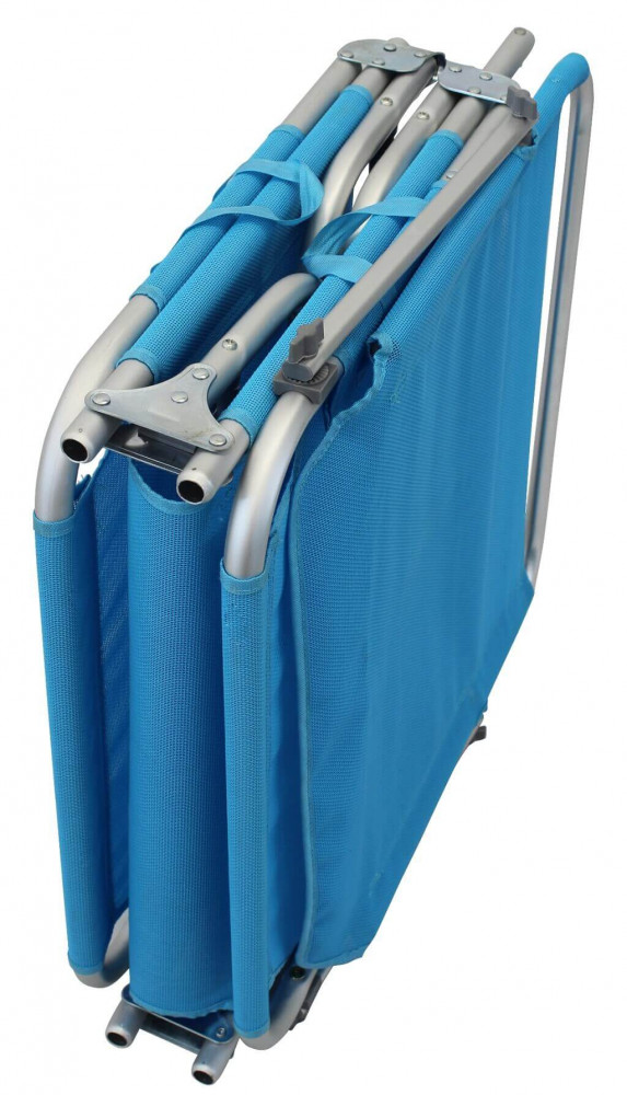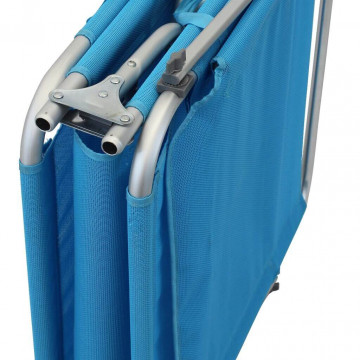 Disponibile BLU, AZZURRO, BLU MELANGE o GRIGIO MELANGE struttura in alluminio Ø 22- 19 mm, portata max 110 kg, tessuto in textilene 450 gr/m2 Dimensioni: cm 190 x 58 x 25 h