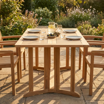 Legno Teak massiccio classe A spessore 26 mm piano abbattibile, ferramenta in lega metallo/ottone Dimensioni: cm 150 x 80 x 77 h