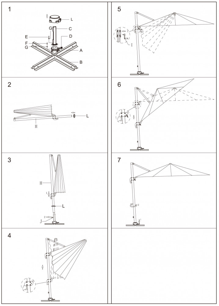 Telo in poliestere TAUPE 250 gr palo girevole in alluminio 53x77 e 25x40 mm 8 stecche alluminio 14x24 mm con antivento e base a crociera Dimensioni: m 3 x 3