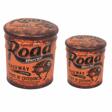 SET DI 2 POUF CONTENITORE TONDO MOTO ARANCIONE