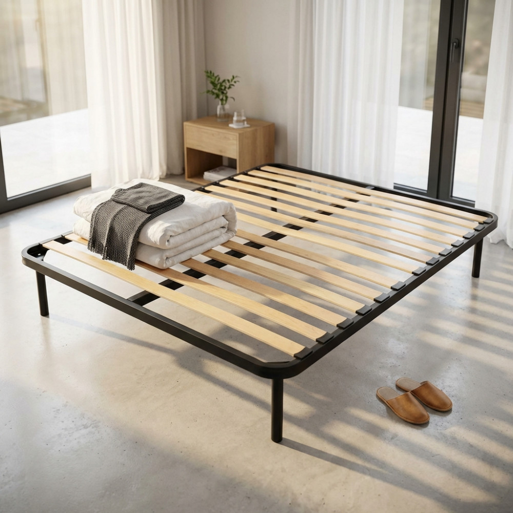 Rete con 15 doghe in legno multistrato, materasso 10 cm Verniciato a polveri epossodiche Dimensioni: B.80x190x34 M.80x180