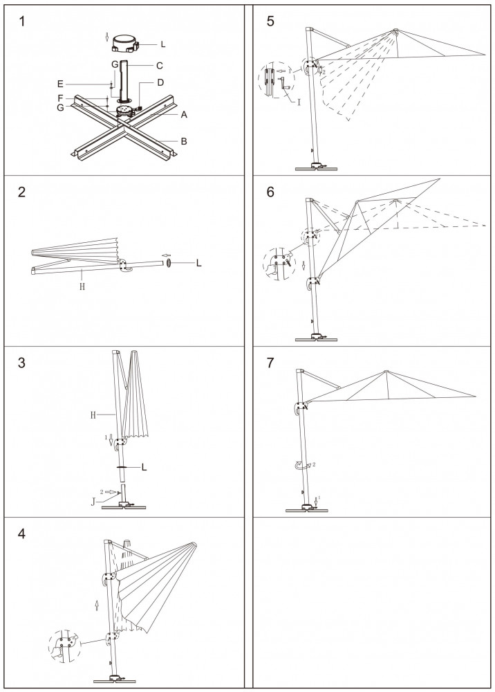 Telo in poliestere TORTORA 250 gr con antivento palo girevole in alluminio 53x77 e 25x40 mm 8 stecche alluminio 14 x 24 mm, base a crociera Dimensioni: m 3 x 4