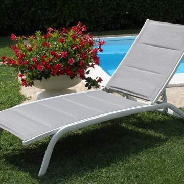 - Dati Tecnici Struttura in alluminio verniciato BIANCO, TORTORA, TAUPE, ANTRACITE, ROSSO o AZZURRO Textilene imbottito Dimensioni: cm 194 x 71 x 83 h