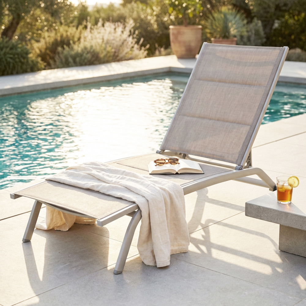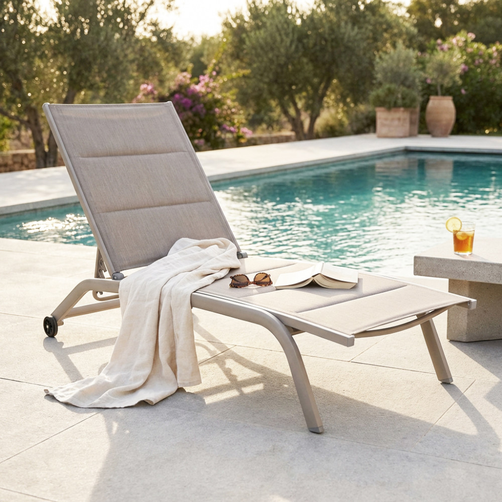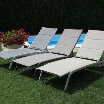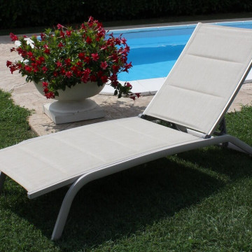- Dati Tecnici Struttura in alluminio verniciato BIANCO, TORTORA, TAUPE, ANTRACITE, ROSSO o AZZURRO Textilene imbottito Dimensioni: cm 194 x 71 x 83 h
