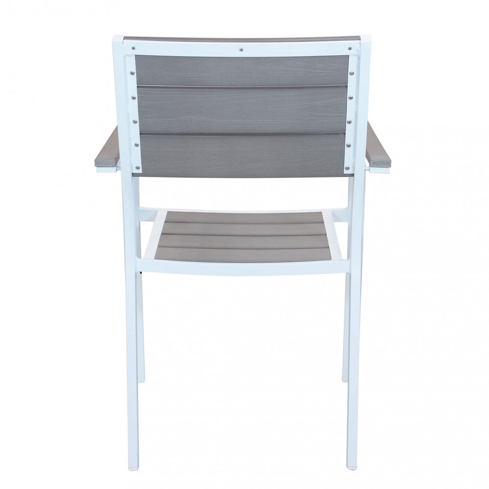 Struttura in alluminio verniciato BIANCO, TORTORA o TAUPE o ANTRACITE schienale e seduta con doghe in POLYWOOD colore grigio Dimensioni: cm 58 x 58 x 89 h