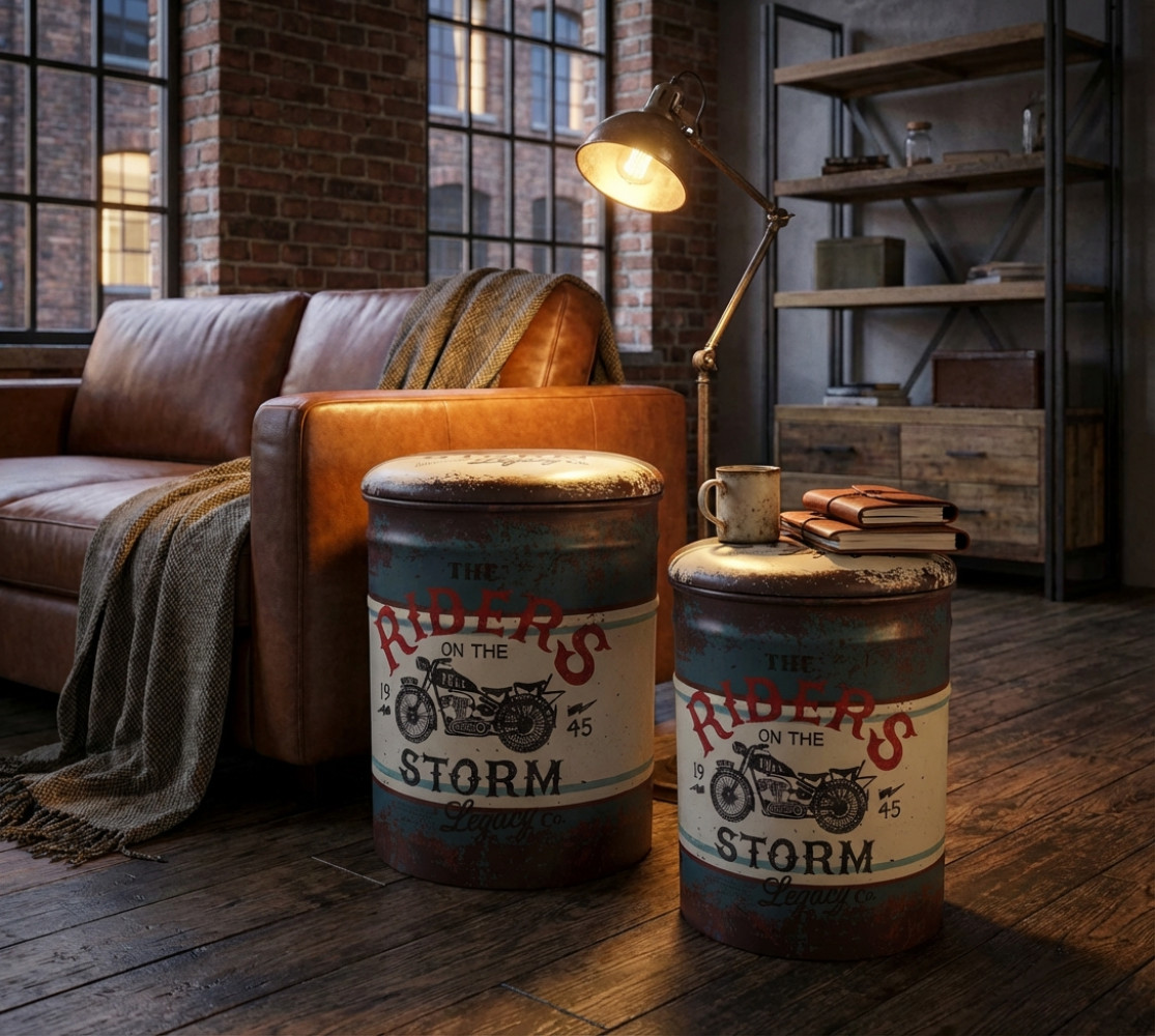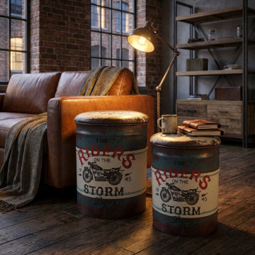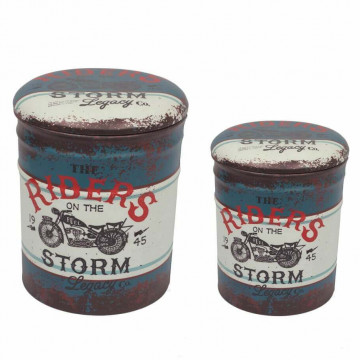 SET DI 2 POUF CONTENITORE TONDO MOTO BLU