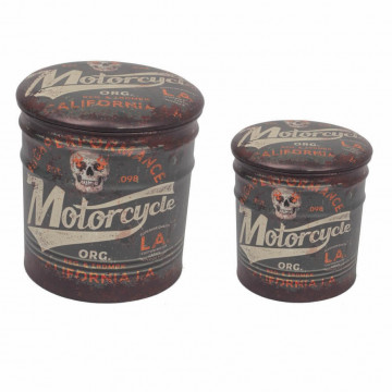 SET DI 2 POUF CONTENITORE TONDO MOTO MARRONE