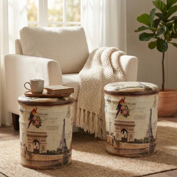 SET DI 2 POUF CONTENITORE TONDO PARIGI