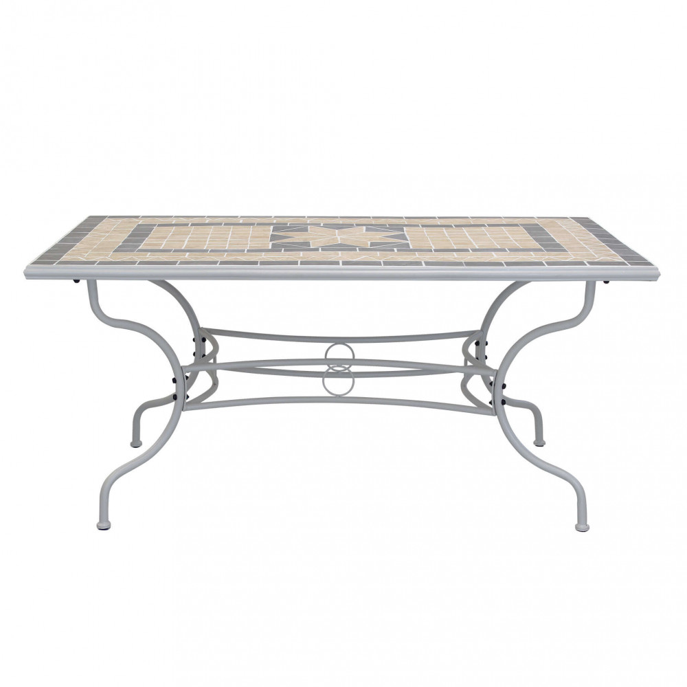 Piano ovale con mosaico MARRONE CHIARO e GRIGIO base in ferro verniciato a polvere Tortora Dimensioni: cm 160 x 90 x 74 h