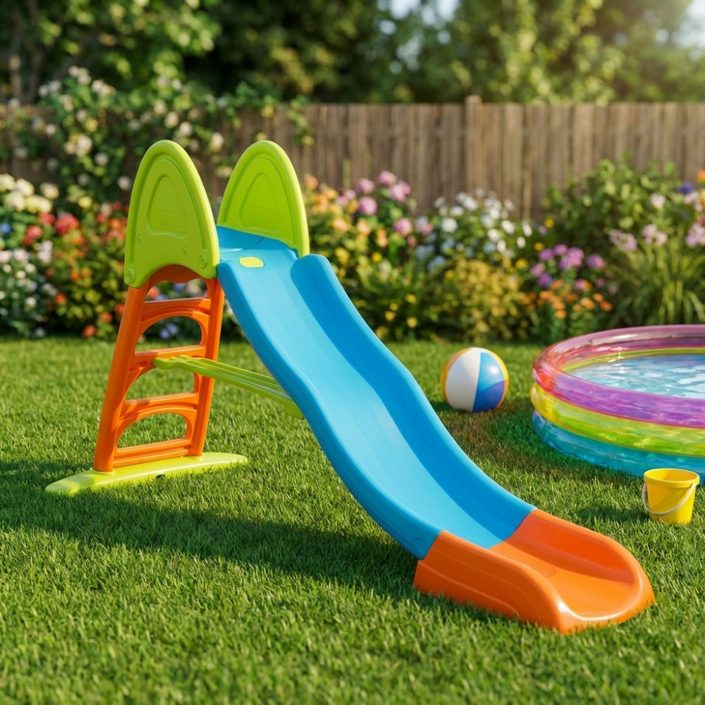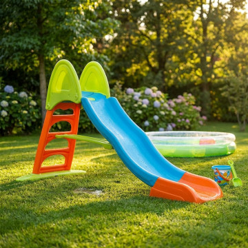 Super scivolo di grandi dimensioni, con scaletta di salita antiscivolo, con sponde alte per una maggiore sicurezza Portata max 45 kg Bambini 3+ Dimensioni: cm 253 x 80 x 140 h