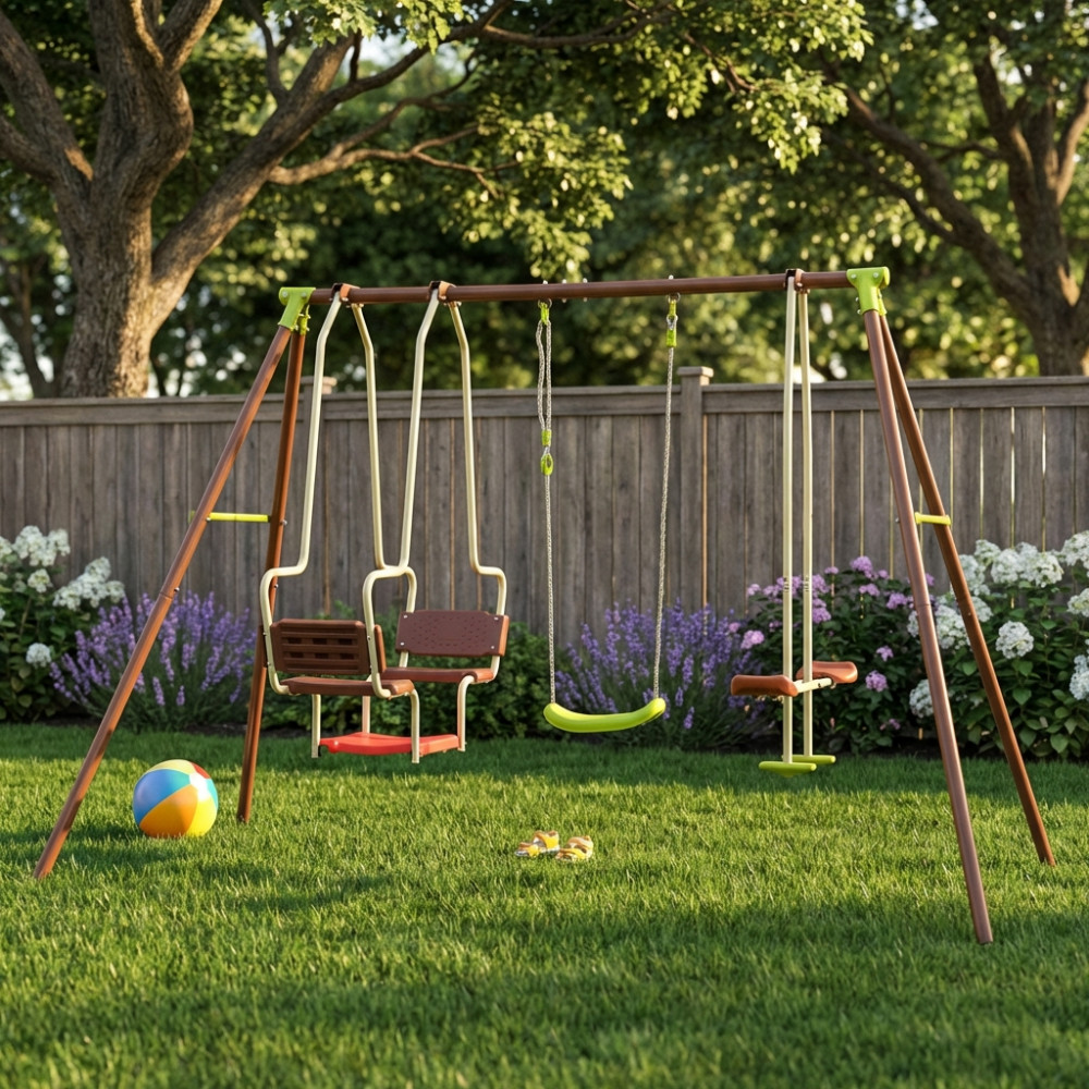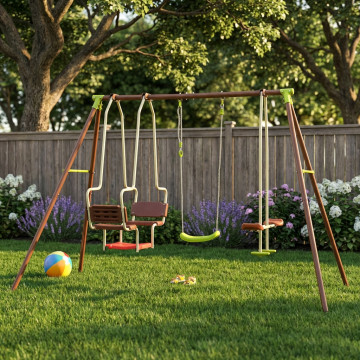 - Dati Tecnici Altalena in metallo- 5 posti tubi Ø 50/25 mm Dimensioni: m 2,69 x 1,53 x 1,95 h