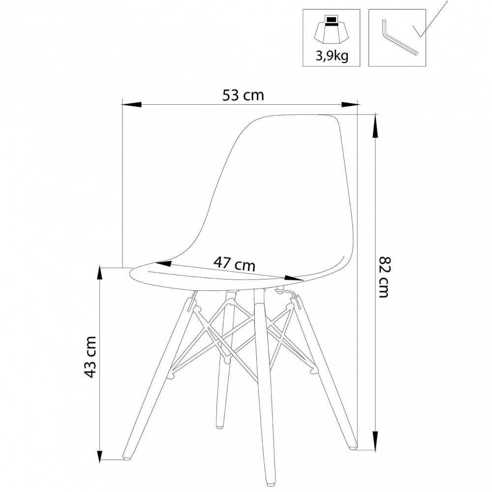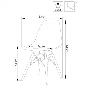 - Dati Tecnici Struttura in metallo, seduta in PC TRASPARENTE gambe in legno Dimensioni: cm 53 x 47 x 82 h