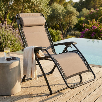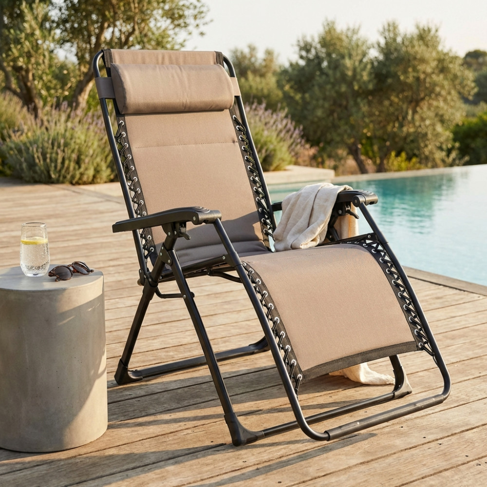 Disponibile GRIGIO SCURO, NERO, MARRONE o BLU struttura in metallo ANTRACITE, portata max 113 kg, tessuto in Oxford Dimensioni: cm 165 x 79 x 117 h