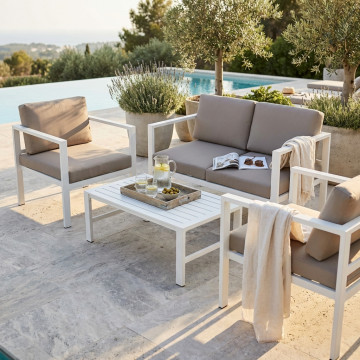 Struttura in allumino BIANCO o TORTORA o TAUPE o ANTRACITE cuscini taupe, per l'antracite cuscini antracite Dimensioni: D.126x70x64/P.68x70x64/T.80x60x35
