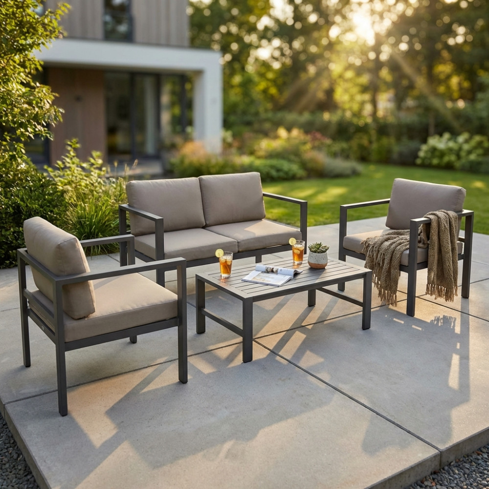 Struttura in allumino BIANCO o TORTORA o TAUPE o ANTRACITE cuscini taupe, per l'antracite cuscini antracite Dimensioni: D.126x70x64/P.68x70x64/T.80x60x35