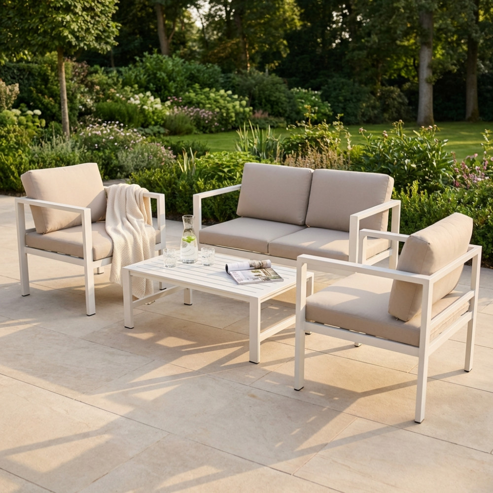 Struttura in allumino BIANCO o TORTORA o TAUPE o ANTRACITE cuscini taupe, per l'antracite cuscini antracite Dimensioni: D.126x70x64/P.68x70x64/T.80x60x35
