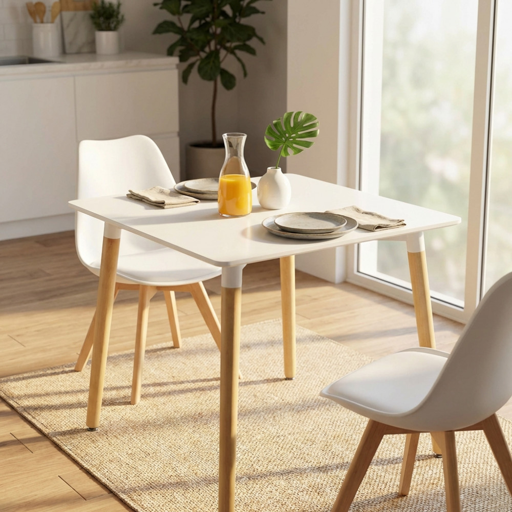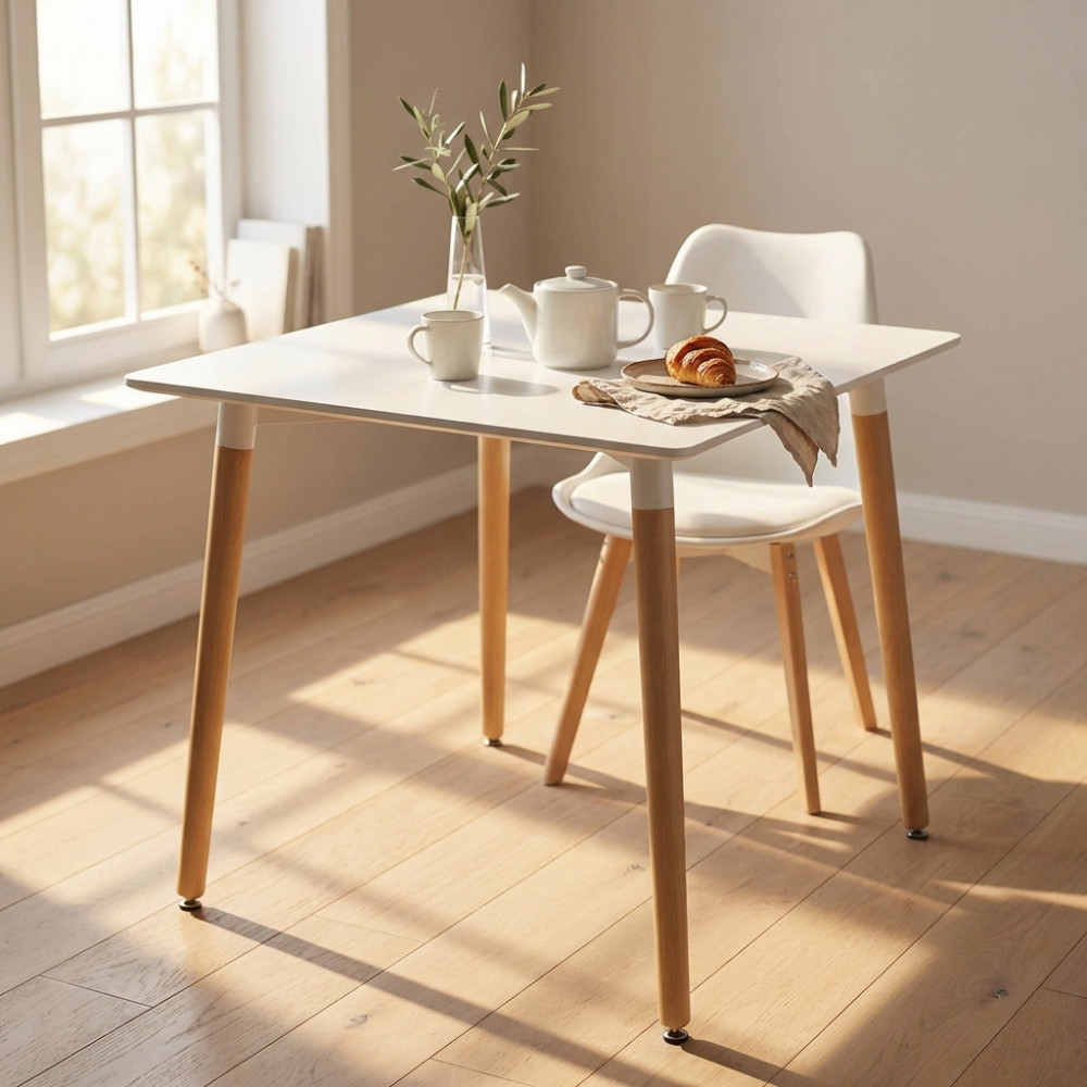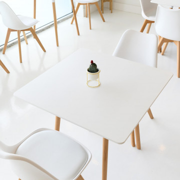 - Dati Tecnici Piano in ABS colore bianco, gambe in legno Dimensioni: cm 80 x 80 x 75 h