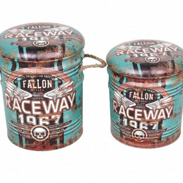 SET DI 2 POUF CONTENITORE TONDO BIRRA BLU E ROSSO