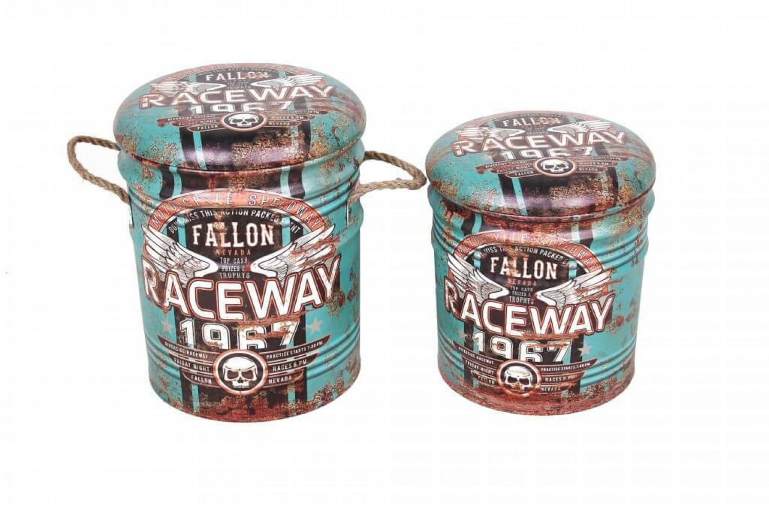 SET DI 2 POUF CONTENITORE TONDO BIRRA BLU