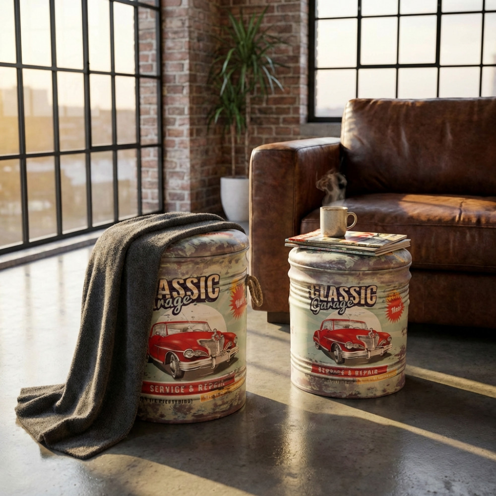 SET DI 2 POUF CONTENITORE TONDO USA