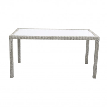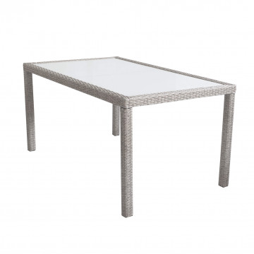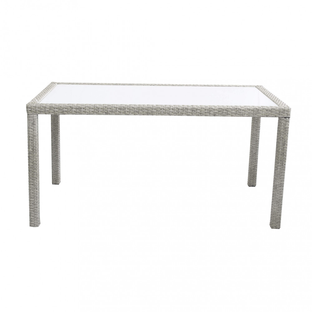 - Dati Tecnici Struttura in metallo, wicker MARRONE, GRIGIO o BIANCO materiale UV protection piano in vetro spessore 5 mm Dimensioni: cm 150 x 90