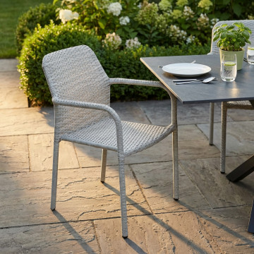 - Dati Tecnici Struttura in metallo, wicker MARRONE, GRIGIO o BIANCO materiale UV protection Dimensioni: cm 56 x 59 x 82 h