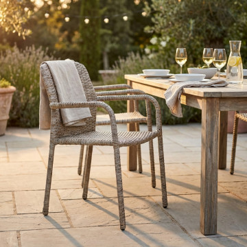 - Dati Tecnici Struttura in metallo, wicker MARRONE, GRIGIO o BIANCO materiale UV protection Dimensioni: cm 56 x 59 x 82 h
