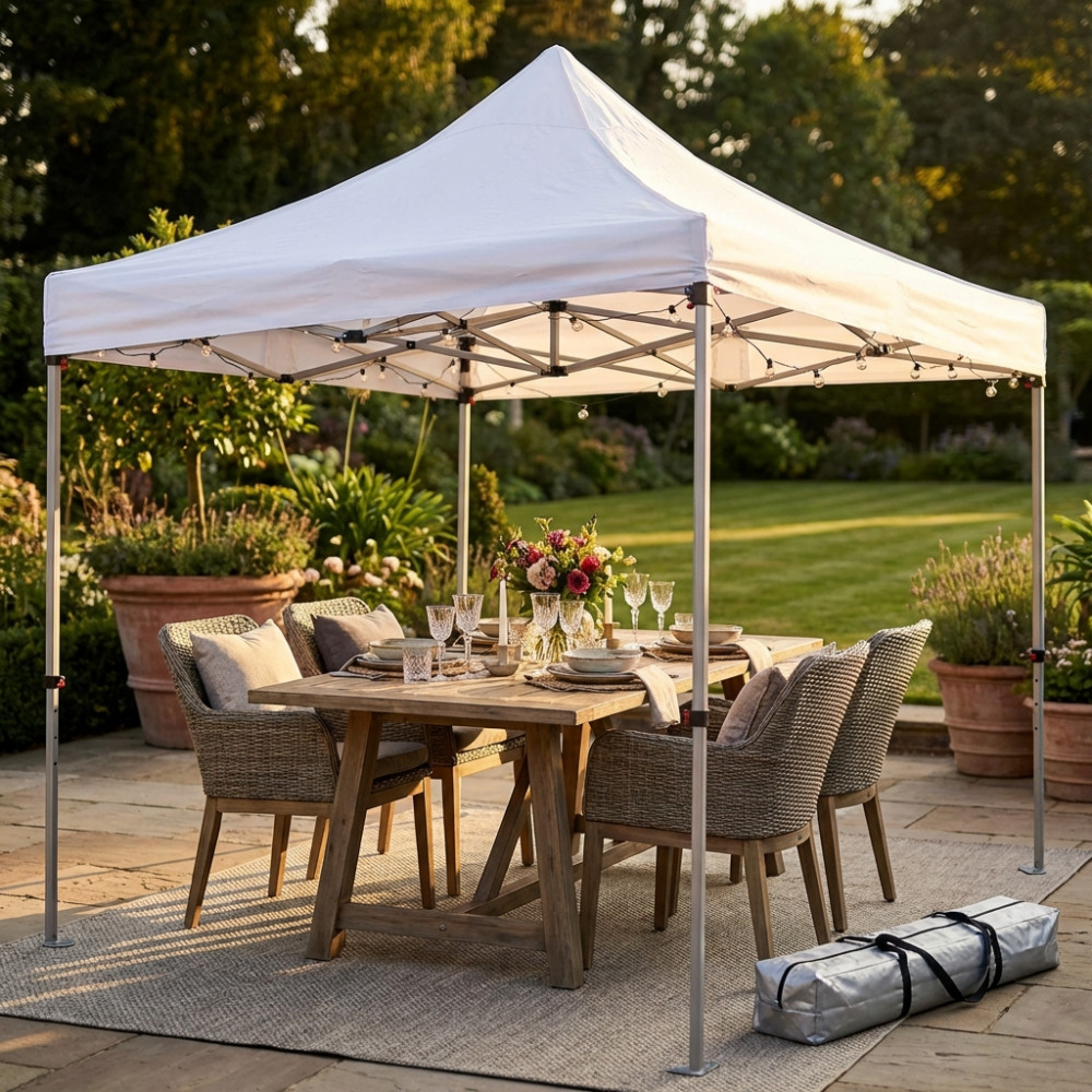 - Dati Tecnici Struttura in alluminio esagonale 800D telo pvc BIANCO con sacca porta gazebo Dimensioni: m 3 x 4,5