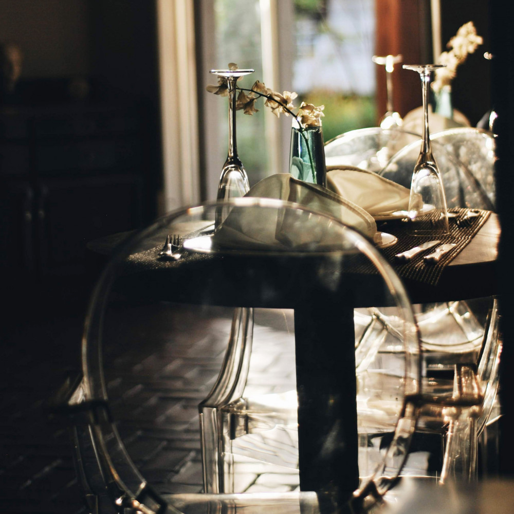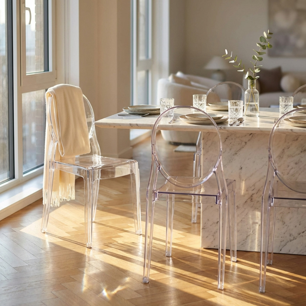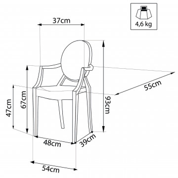 - Dati Tecnici Struttura e seduta in policarbonato TRASPARENTE Dimensioni: cm 55 x 54 x 93 h