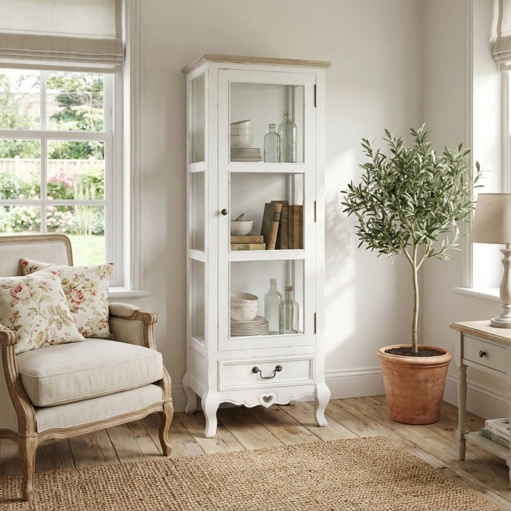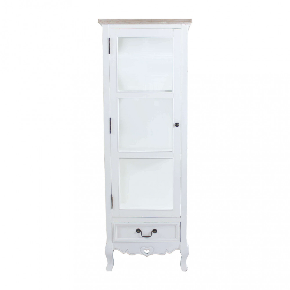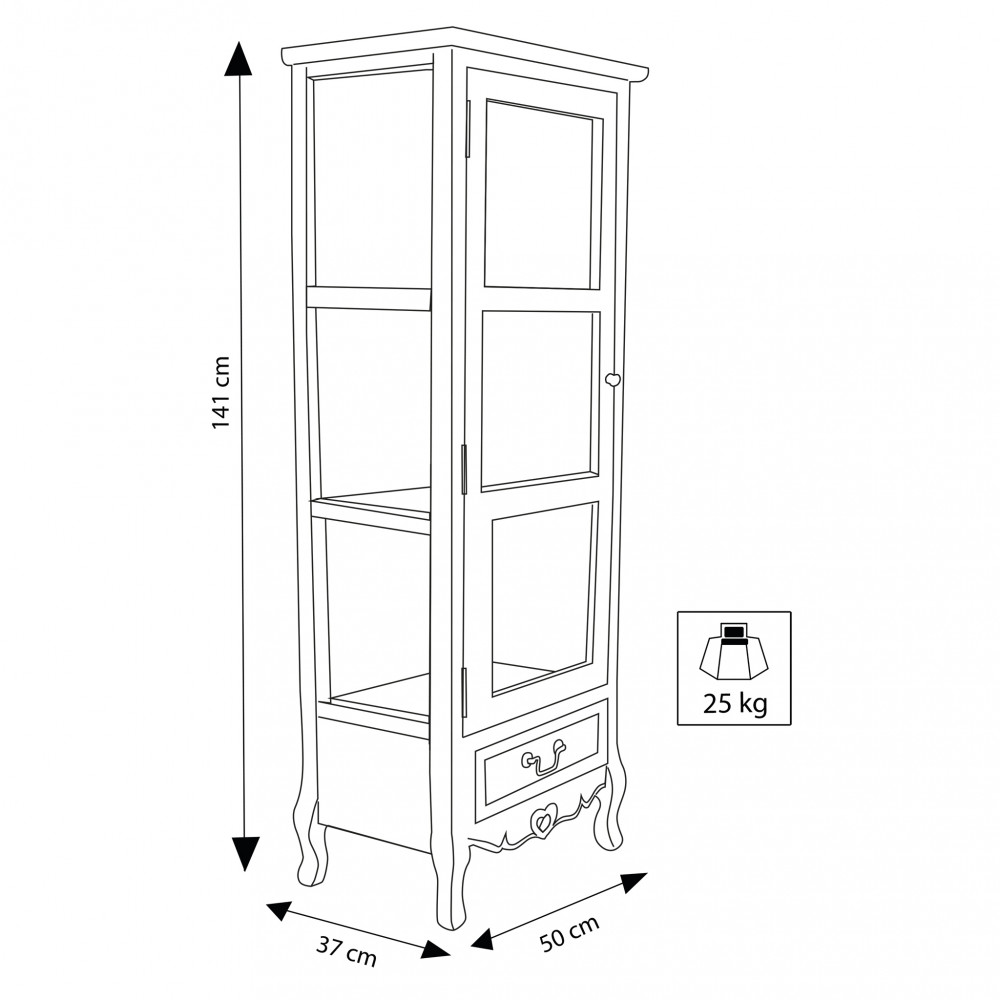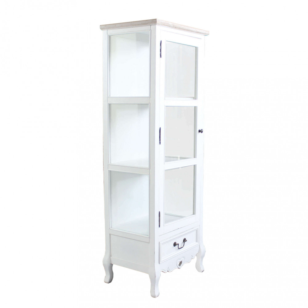 - Dati Tecnici Struttura in legno di paulonia colore BIANCO e top colore NOCCIOLA 1 cassetto, 1 vetrina con 3 ripiani Dimensioni: cm 50 x 37 x 141 h