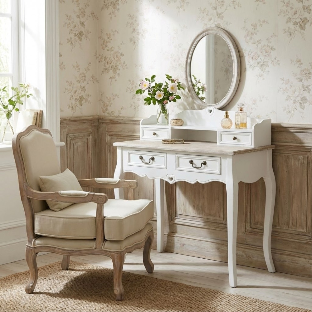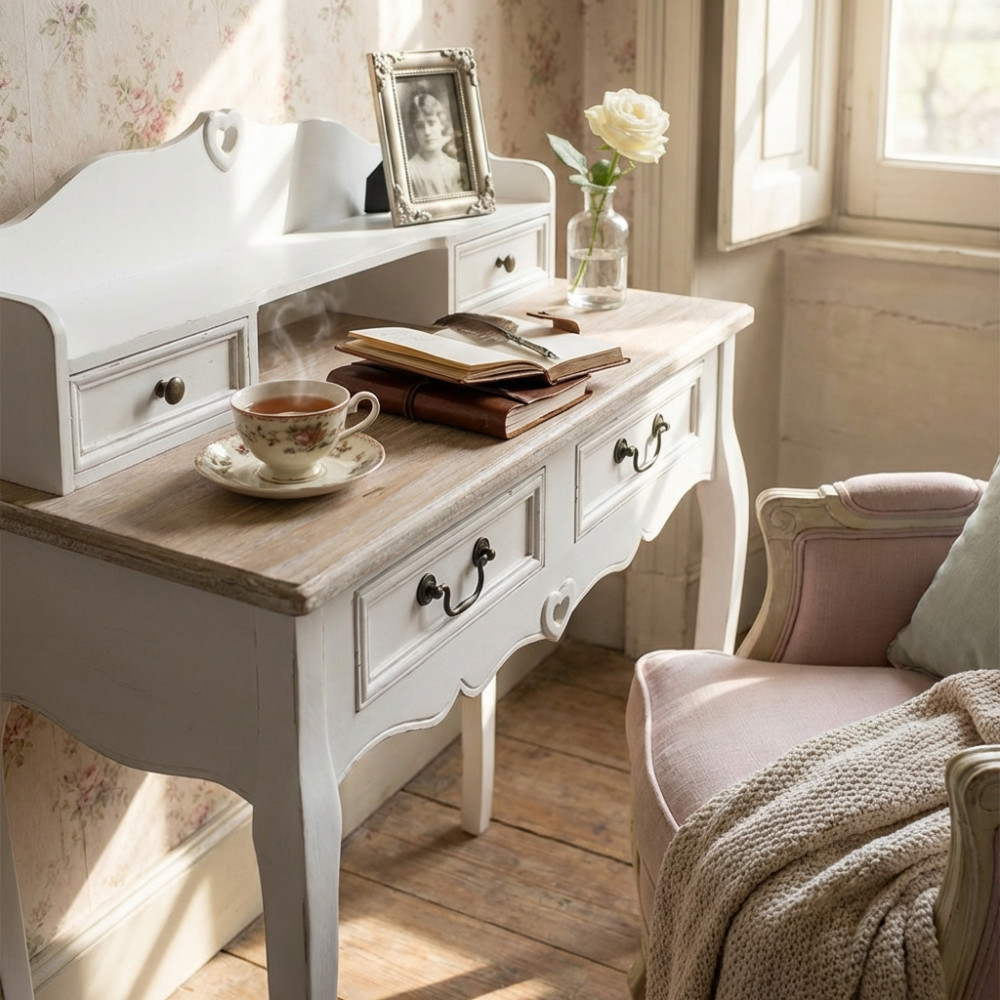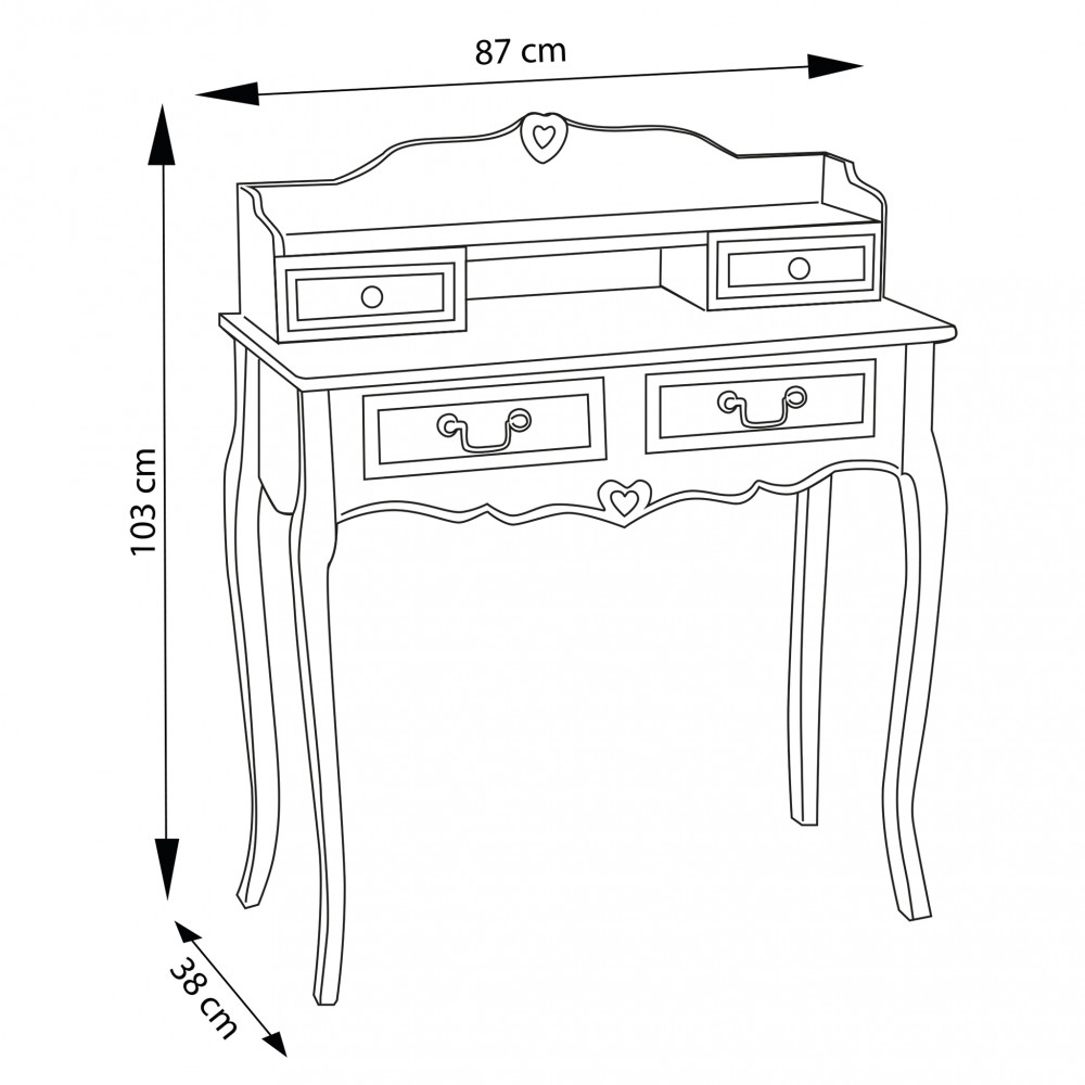- Dati Tecnici Struttura in legno di paulonia colore BIANCO e top colore NOCCIOLA 4 cassetti Dimensioni: cm 87 x 38 x 103 h