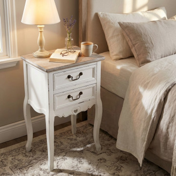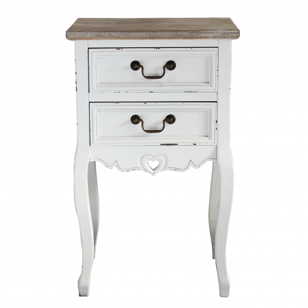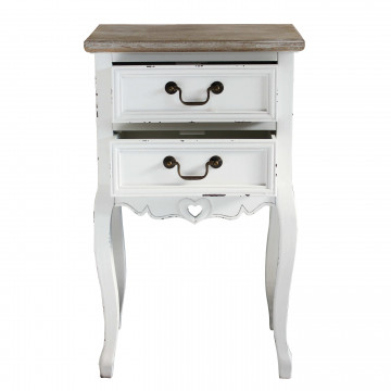 - Dati Tecnici Struttura in legno di paulonia colore BIANCO e top colore NOCCIOLA 2 cassetti Dimensioni: cm 44 x 32 x 74 h