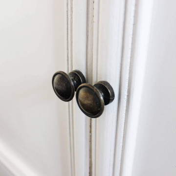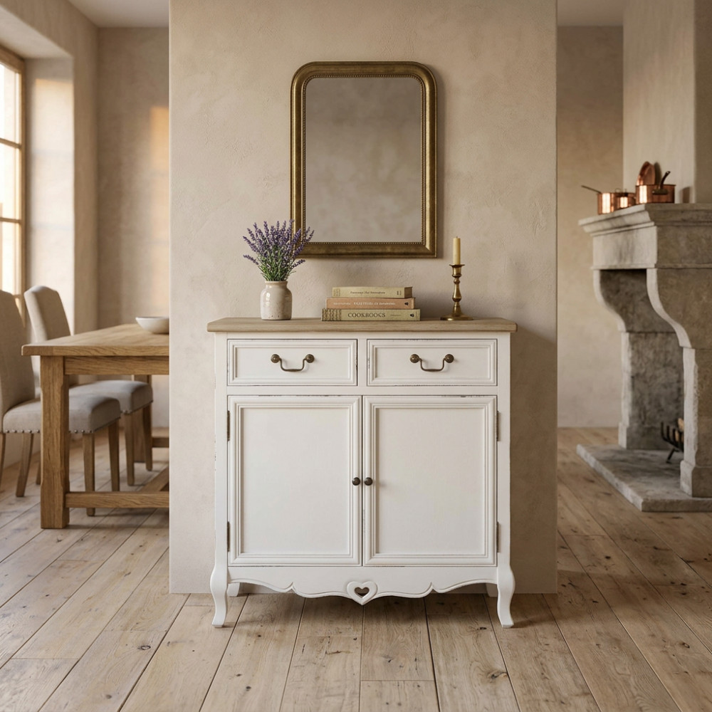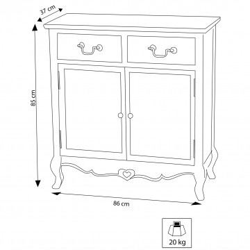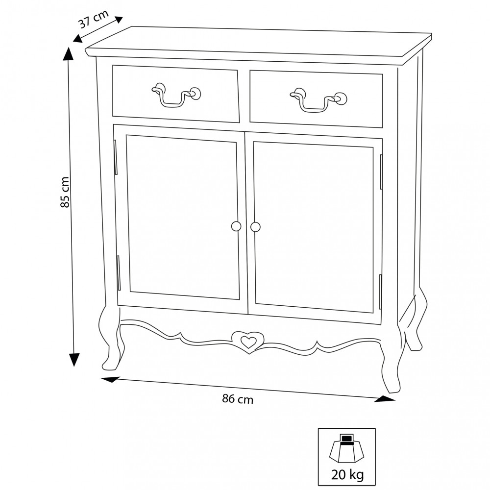 - Dati Tecnici Struttura in legno di paulonia colore BIANCO e top colore NOCCIOLA 2 ante e 2 cassetti Dimensioni: cm 86 x 37 x 85 h