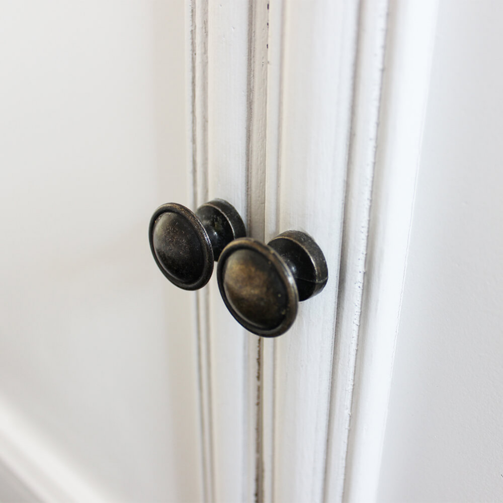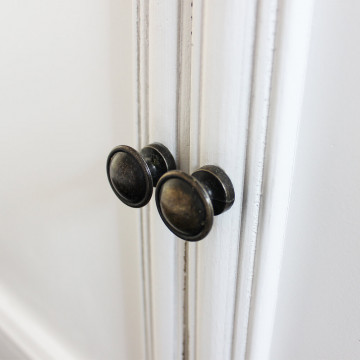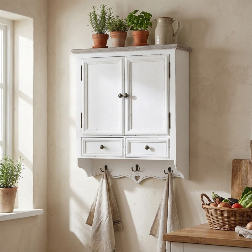 - Dati Tecnici Struttura in legno di paulonia colore BIANCO e top colore NOCCIOLA 2 ante, 2 cassetti e 3 appendiabiti Dimensioni: cm 45 x 34 x 66 h
