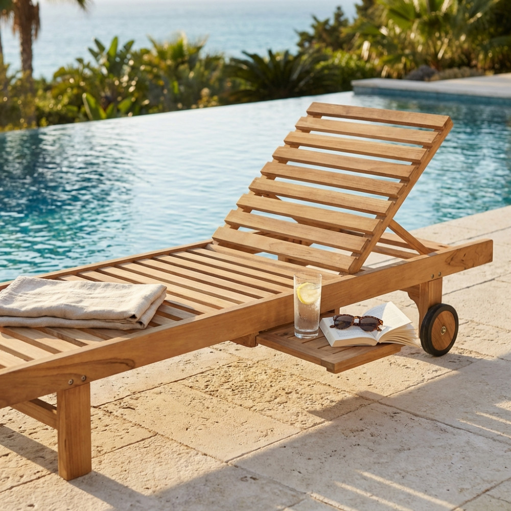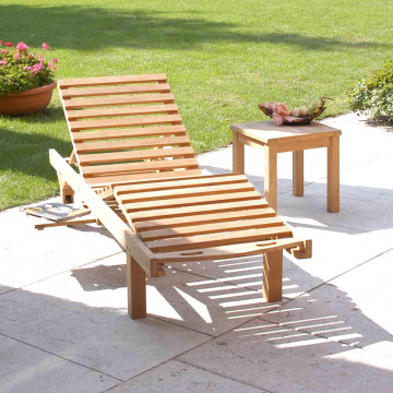 Legno Teak massiccio classe A 4 posizioni schienale e 2 piedi, ferramenta in lega metallo/ottone abbinabile ai cuscini REAL o POLY LETTINO Dimensioni: cm 65 x 208 x 35 h