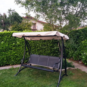 Telo poliestere 160 gr BEIGE cuscino textilene 2 x 1 NERO struttura in metallo nero tubi Ø 48/32/25 mm portata massima 260 kg Dimensioni: cm 195 x 120 x 172 h