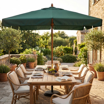 Telo AVORIO, VERDE SCURO, Bordeaux palo in legno Ø48 mm telo poliestere 180 gr 8 stecche, antivento e mantovana Dimensioni: m 3 x 3