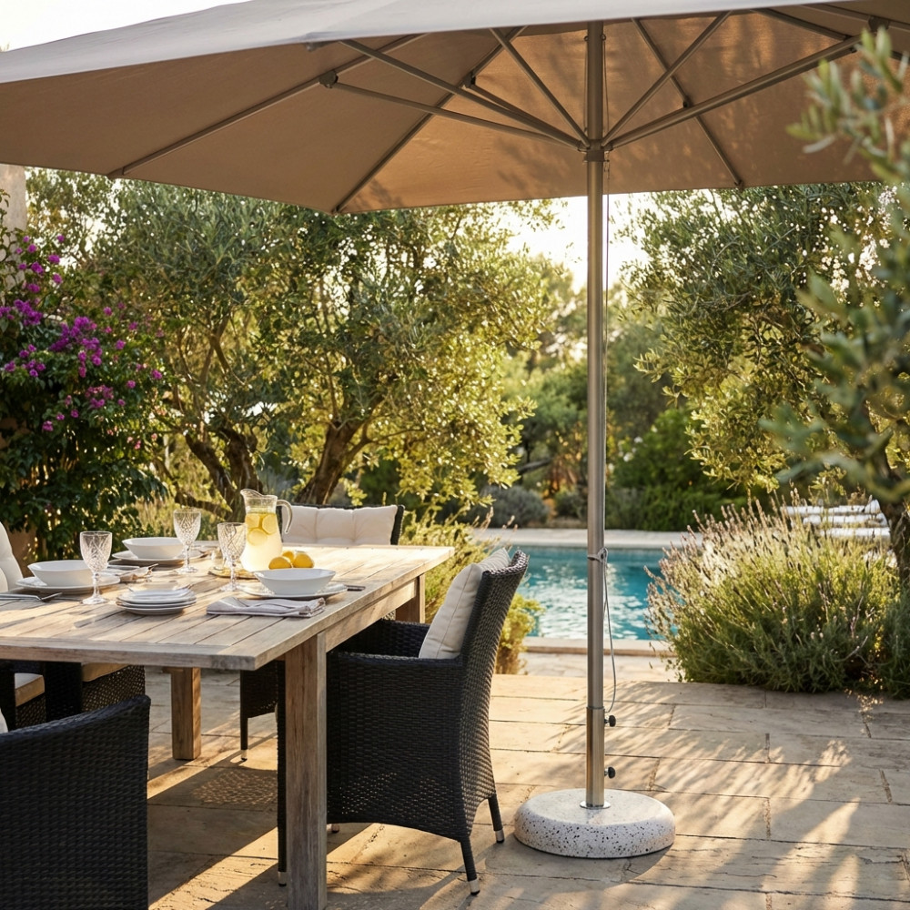 Telo in poliestere ECRU 250 gr palo girevole in metallo Ø 48 mm 8 stecche metallo 13x22 mm con antivento Dimensioni: m 3 x 4