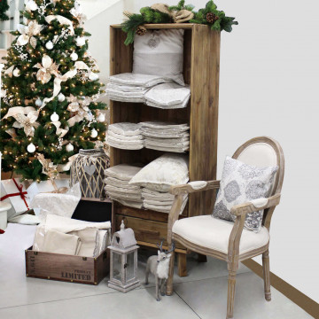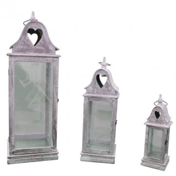 Set di 3 lanterne, struttura in legno e metallo verniciato col. bianco antico, con vetro Dimensioni: G.30x30x90/M.21x21x60/P.14x14x40