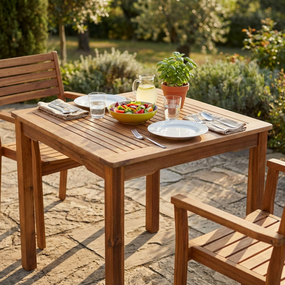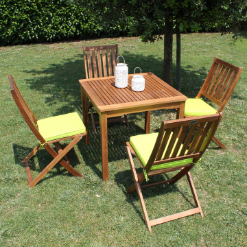 - Dati Tecnici Legno di Acacia massiccio spessore 22 mm misure delle gambe cm 4,5 x 4,5 Dimensioni: cm 80 x 80 x 74 h