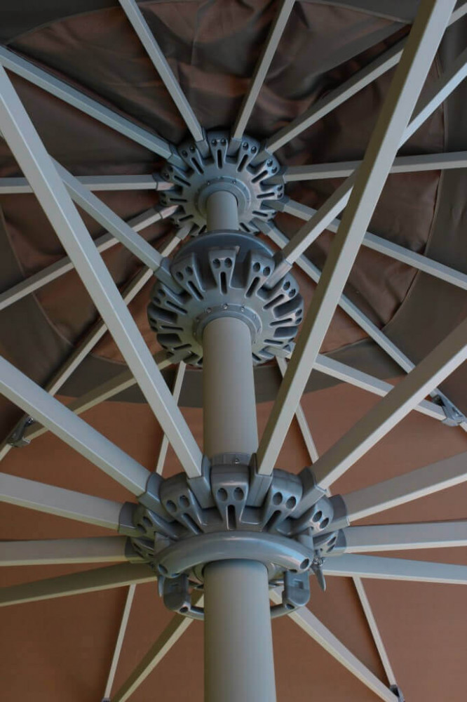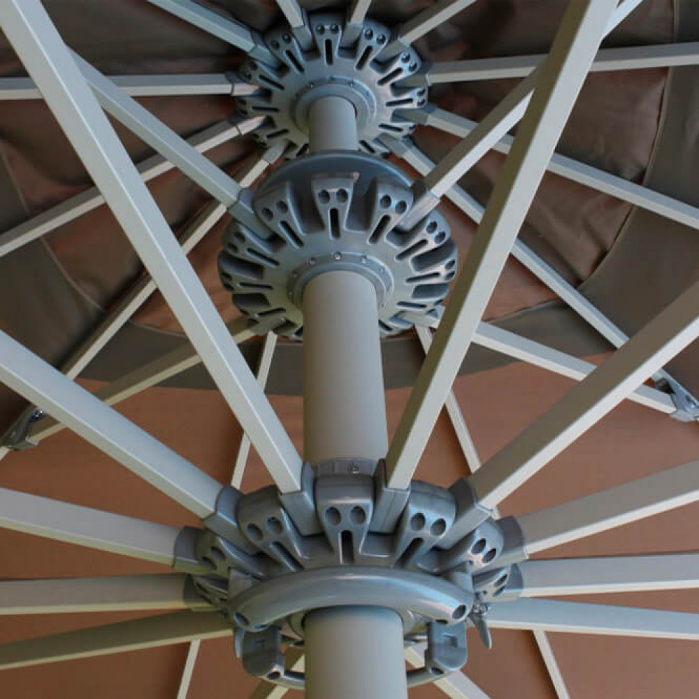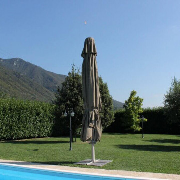 Telo in poliestere TAUPE 350 gr con antivento palo TELESCOPICO in alluminio verniciato TORTORA 12 stecche alluminio 20 x 40 mm, palo 10 cm Dimensioni: m 5 x 5