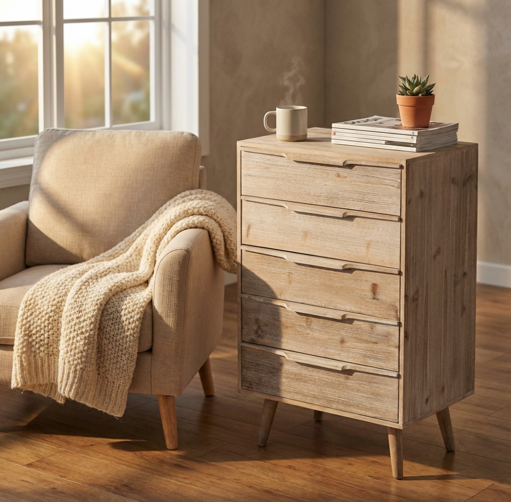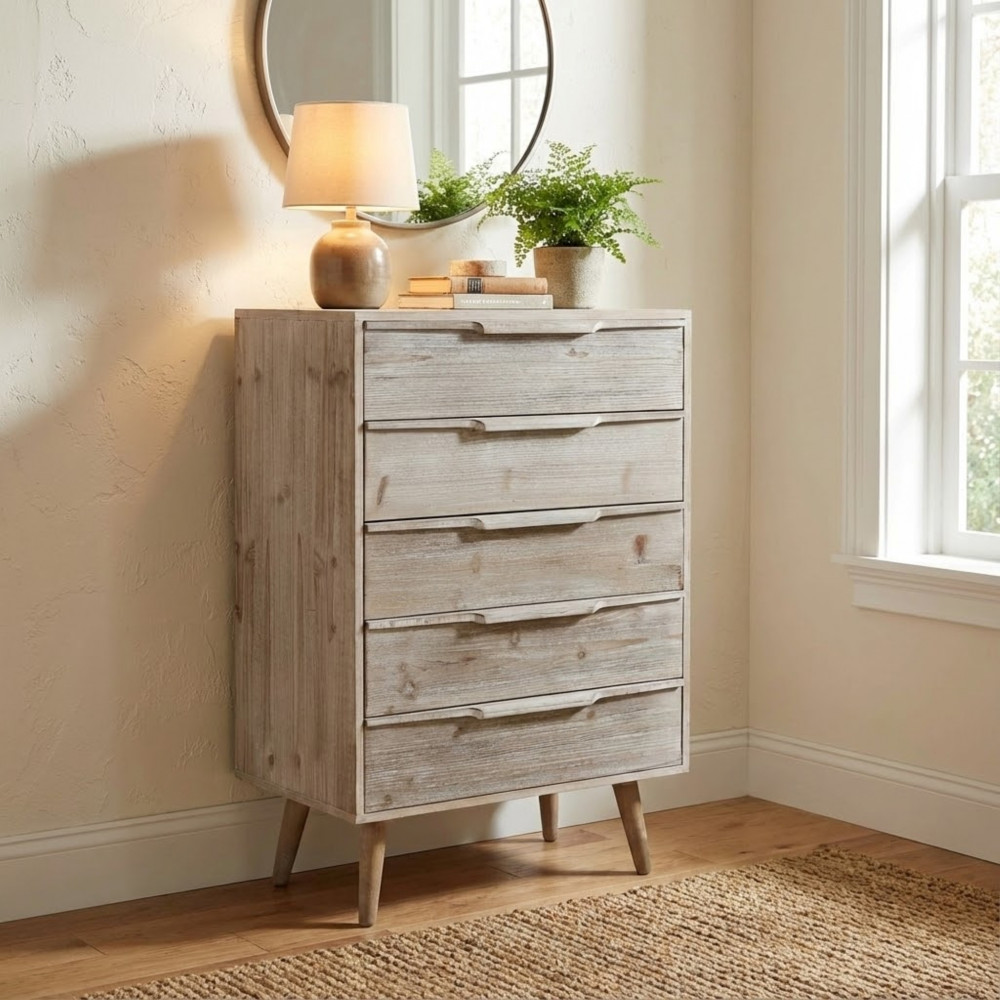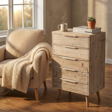 Struttura in legno PAULONIA+MDF con 5 cassetti colore legno sbiancato Dimensioni: cm 60 x 40 x 95 h