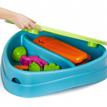 Tavolo da gioco suddiviso in due aree tematiche sabbia ed acqua accessori inclusi, possibilità di trasformarlo in un tavolino di appoggio grazie al coperchio. Bambini 2+ Dimensioni: cm 70 x 70 x 46 h